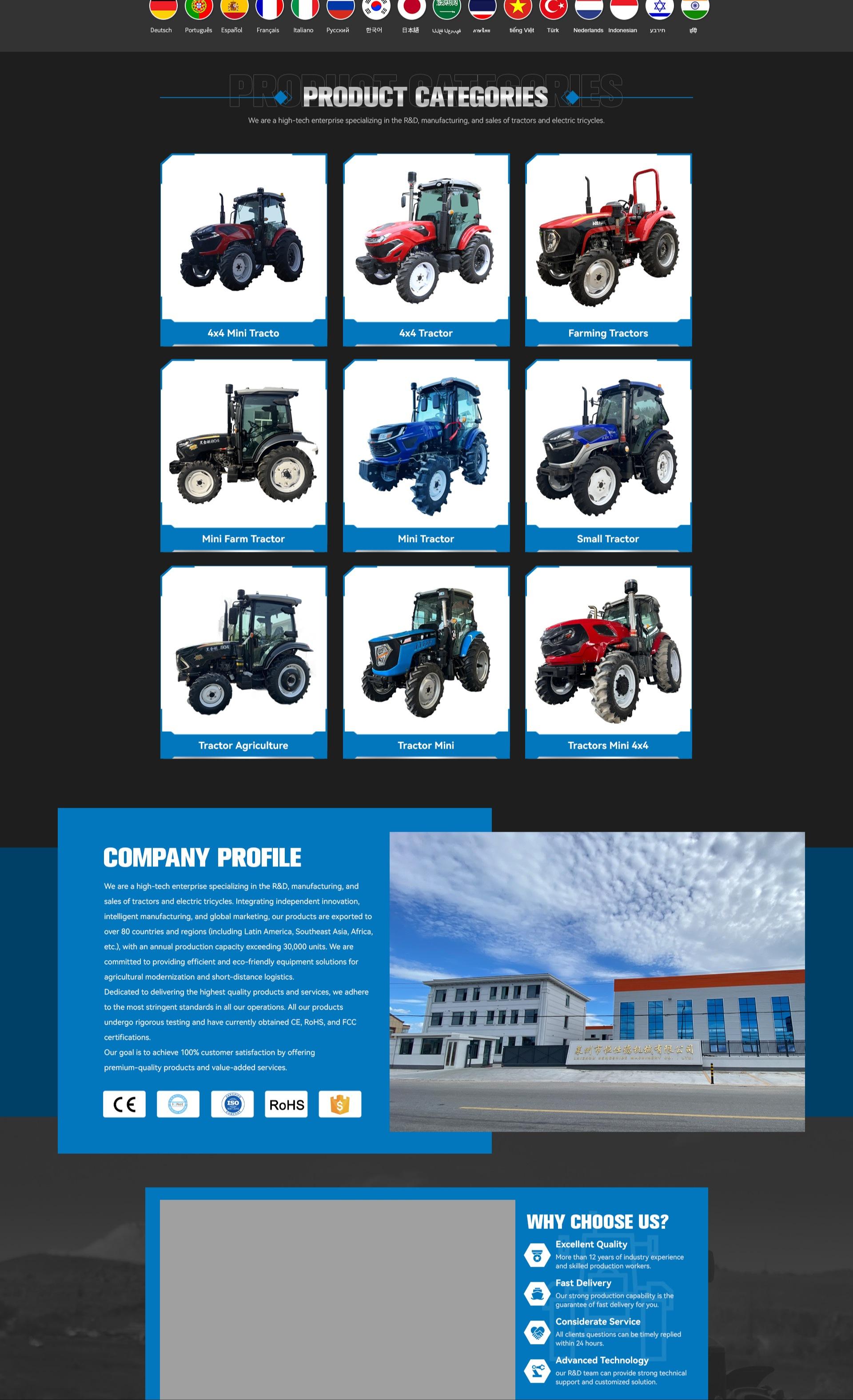 Productos principales:Tractor, tres rebotes, triciclo eléctrico, cosechadora
